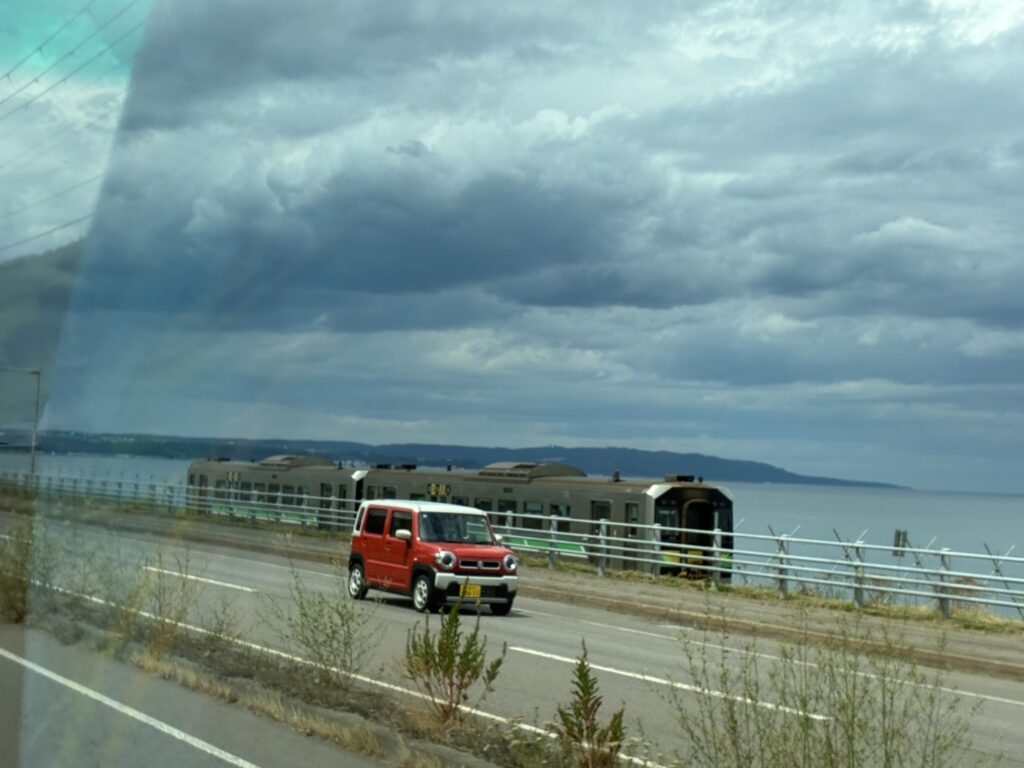 電車と並走できるという奇跡が!!そして電車は藻琴駅へ入って行きました🚞網走市内、炉ばた燈さんにて昼食🍴