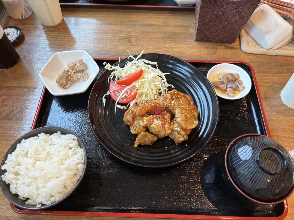 お客様は釜飯などの定食。乗務員はザンギ定食。