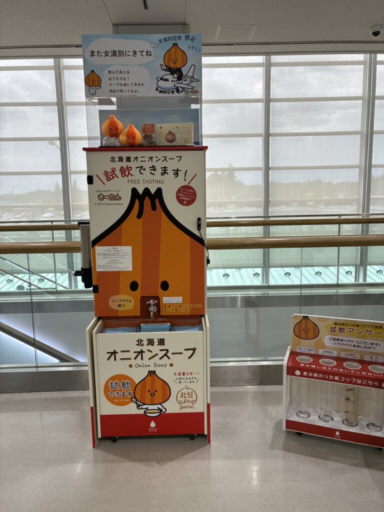 蛇口からみかんジュースは愛媛で見ましたが、北海道は蛇口からオニオンスープ🍲美味しかったです😋