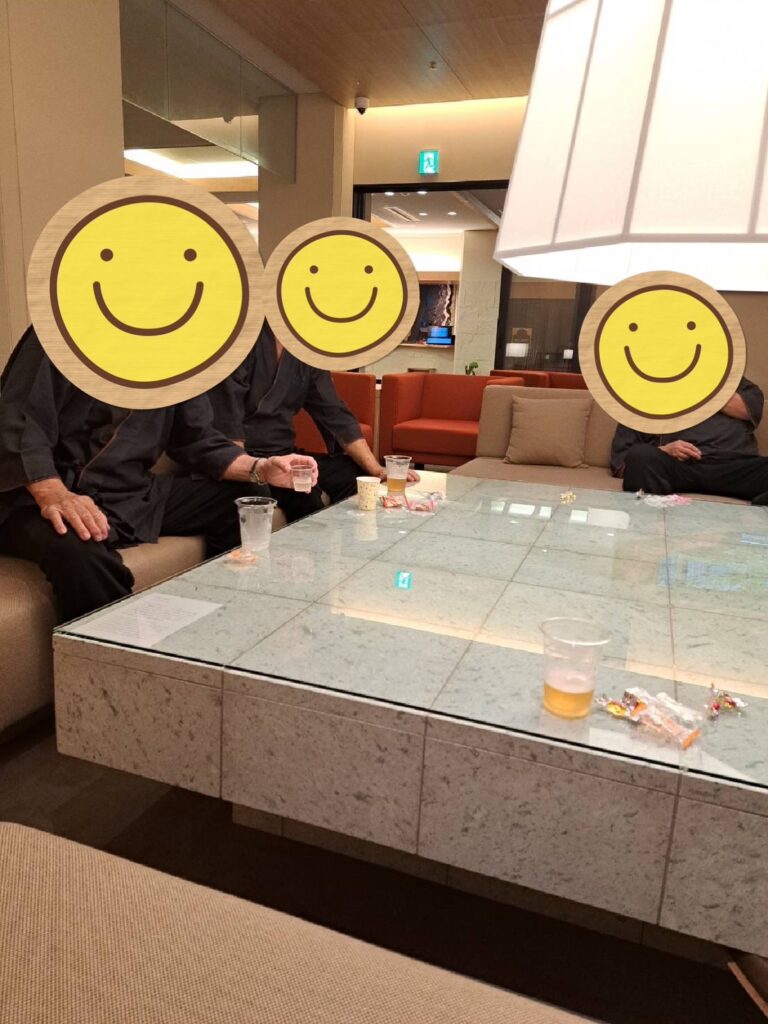 浅虫温泉到着の二次会✨🍺鯛茶漬けの夜食🌃🍴ありがたいなぁ❗みんなでワイワイ〰️😅楽しそう