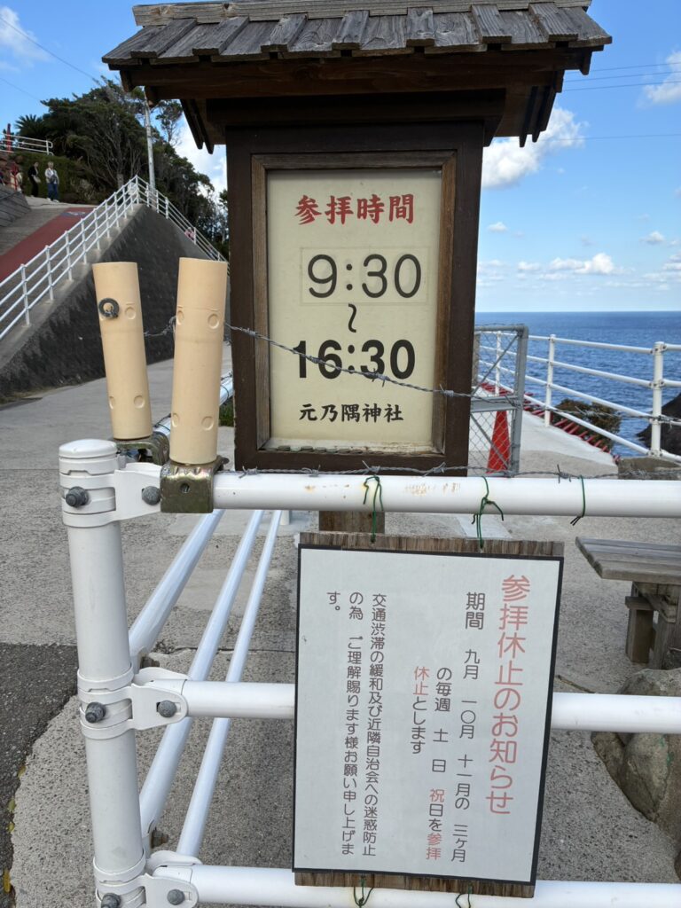 元乃隅神社、秋の行楽シーズンの土日祝日参拝を休止にしていました・・・。