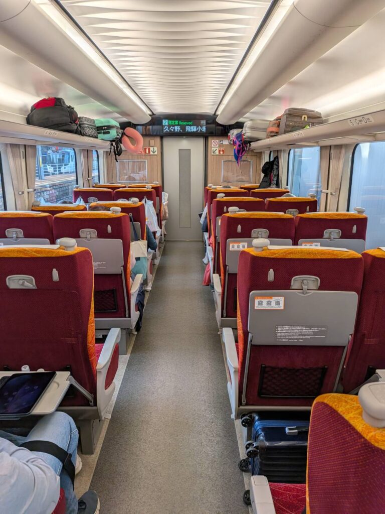今回は広島駅まで新幹線、降りたら安芸の宮島厳島神社へいってきます!外人さん達に囲まれゆったり特急ひだ号発車です😊