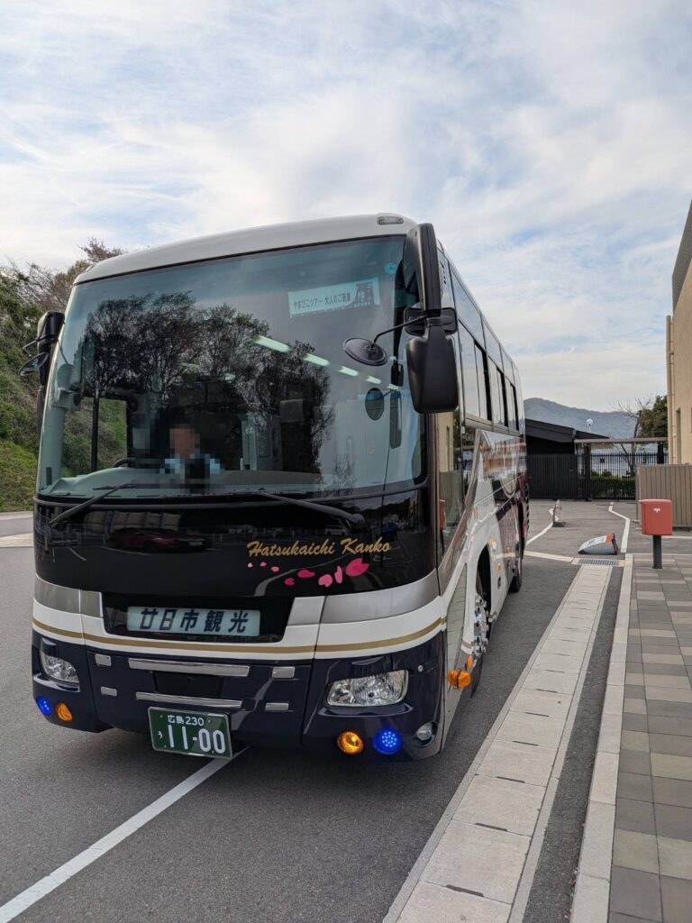 本日からお世話になる廿日市交通さんの新車で今日が5回目の運行だそうで、旅の安全と安心よろしくお願いします🙏