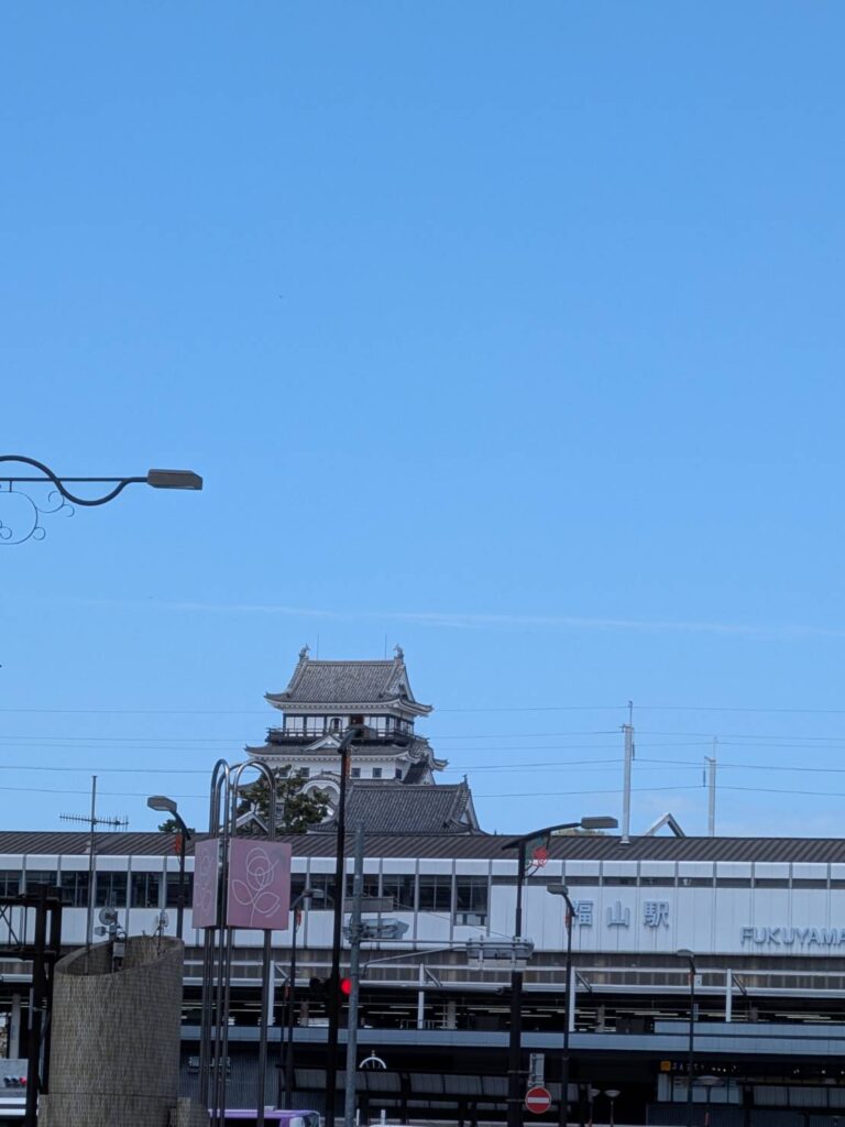 福山城も丁度桜満開で福山駅の、ホームから観られるなんて素晴らしい光景でした😊