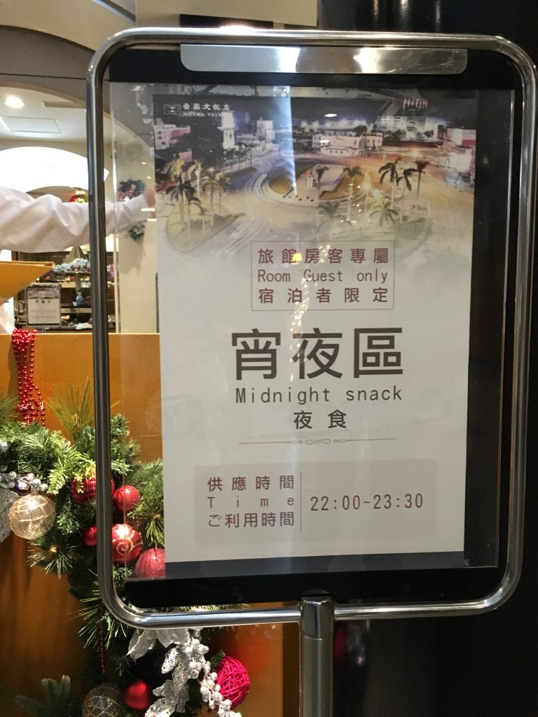 台南ホテル、なんと夜食が出るのです!!台湾でも夜食を出すホテルはここだけだそうです。