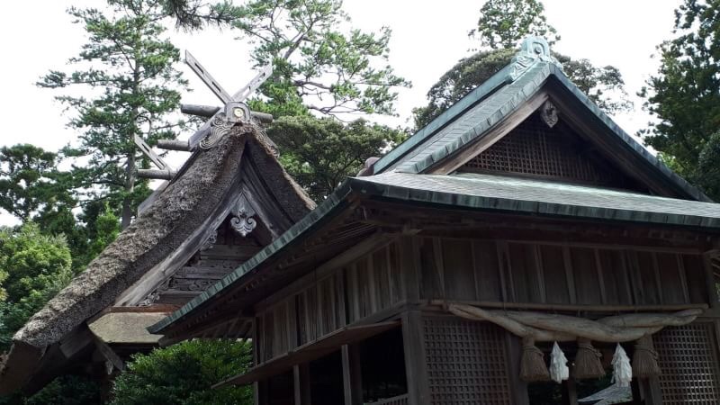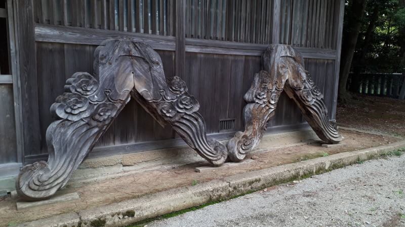 水若酢神社の社殿。鬼瓦という言い方と違い兄板。
