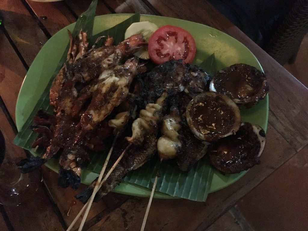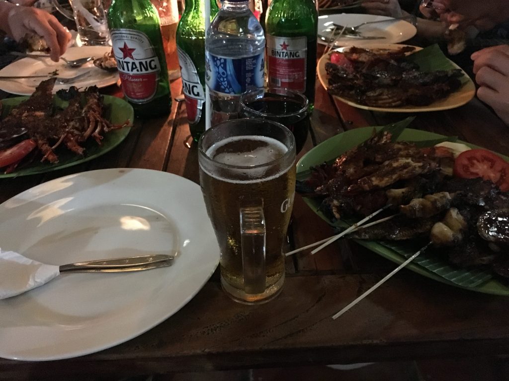 夕食は、ジンバランの浜辺で海鮮ディナーです![]()