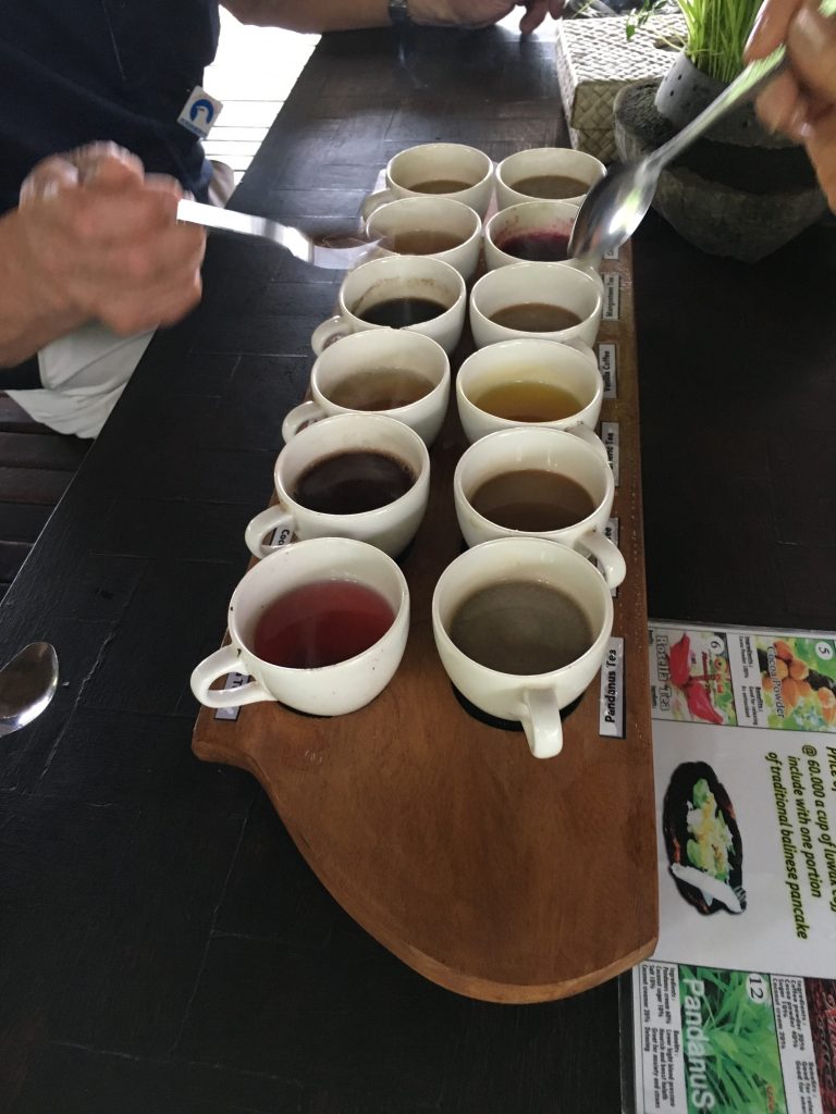 12種類のコーヒー・紅茶をスプーンで試飲。