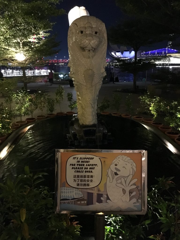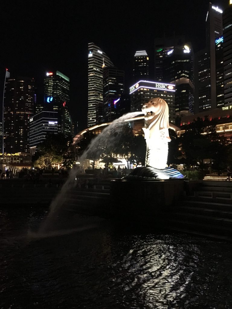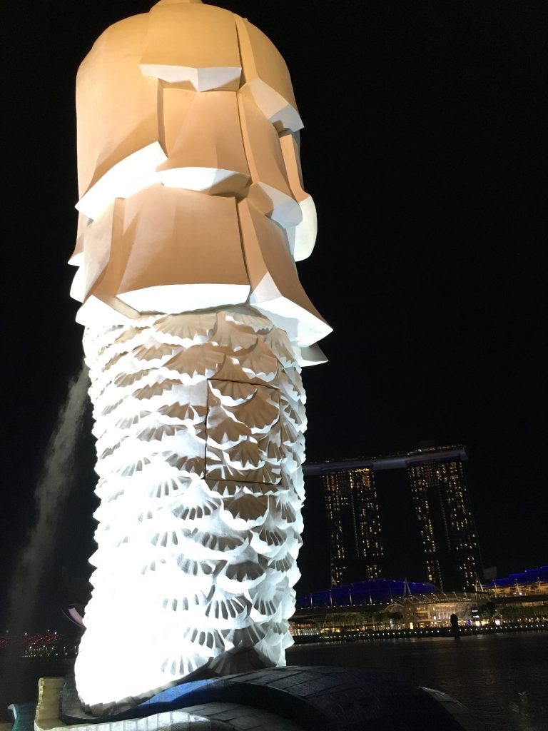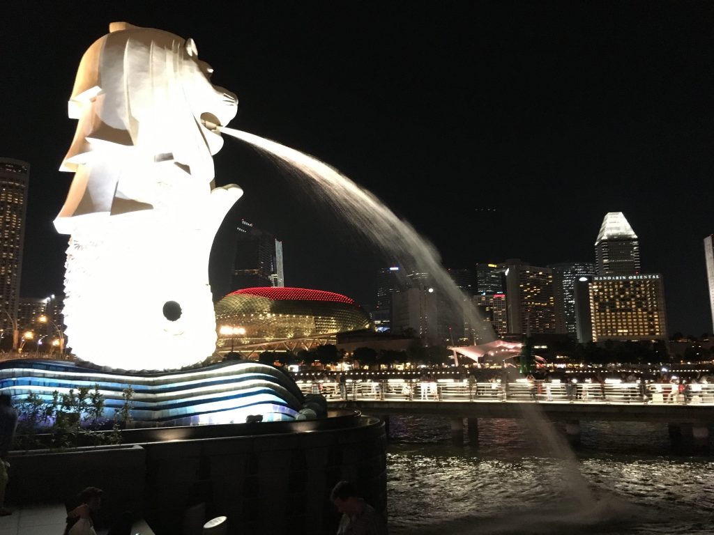 マーライオンの後ろに立つと、しぶきが気持ちいいです
