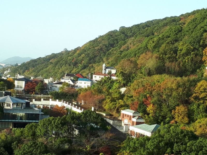 神戸のホテルから布引ハーブ園行きのロープウェイと北野異人館が見える![]()