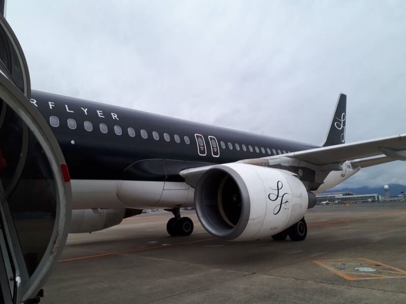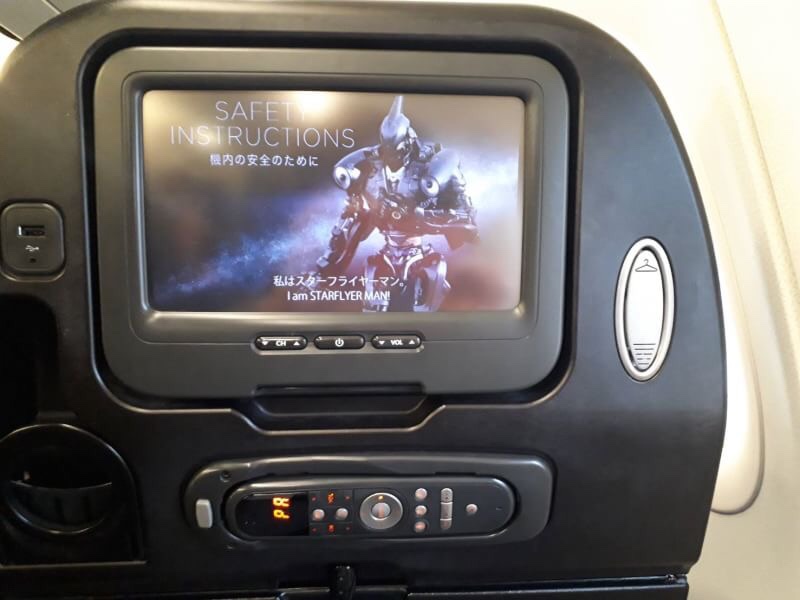 ここでの機内の案内はスターフライヤーマンが画面で案内をしてくれます![]()